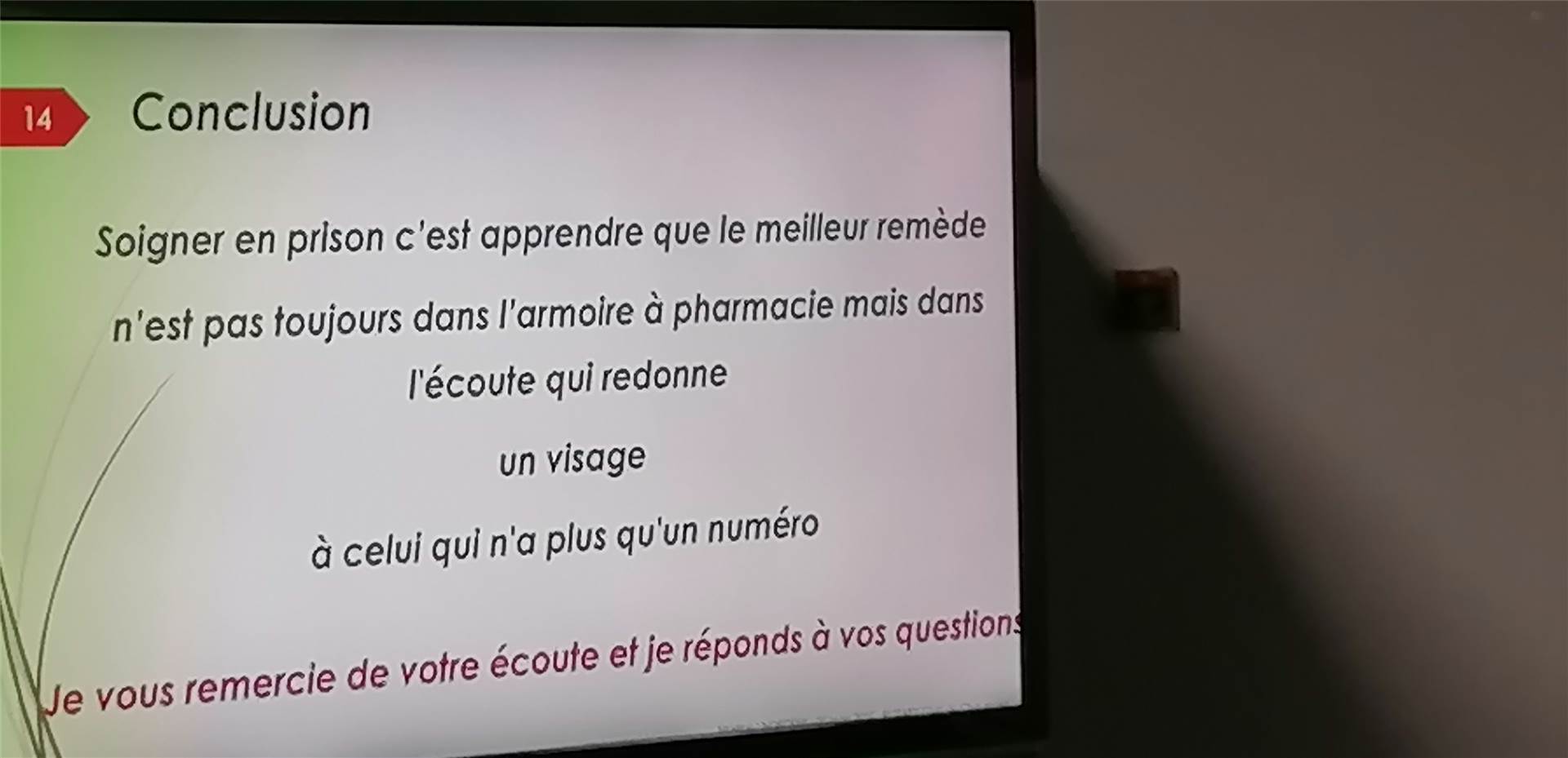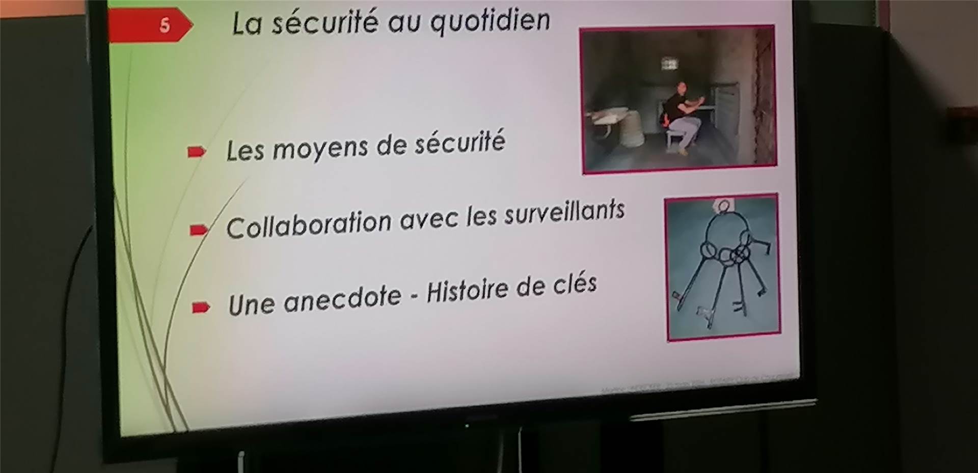 Evoquant avec passion sa vie passée durant 21 ans auprès de détenus de tout ordre purgeant des peines de moins de 2 ans, elle nous relate différentes situations , avec à chaque fois une anecdote tirée de sa mémoire .