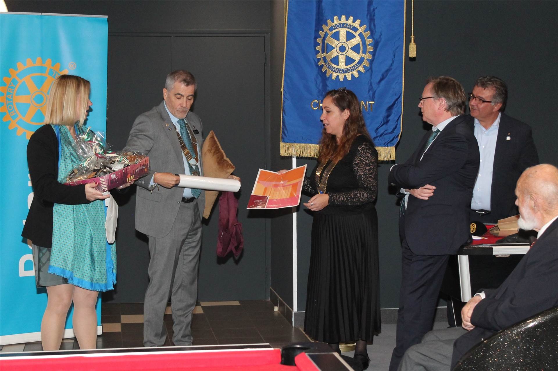Ensuite,notre Présidente, Stéfania  et le Gouverneur ont pu échanger durant 30 mn sur les enjeux du Rotary International, du District et les projets du Club.Rejoints par le bureau,le Gouverneur a été à l'écoute des idées et des projets de notre club.